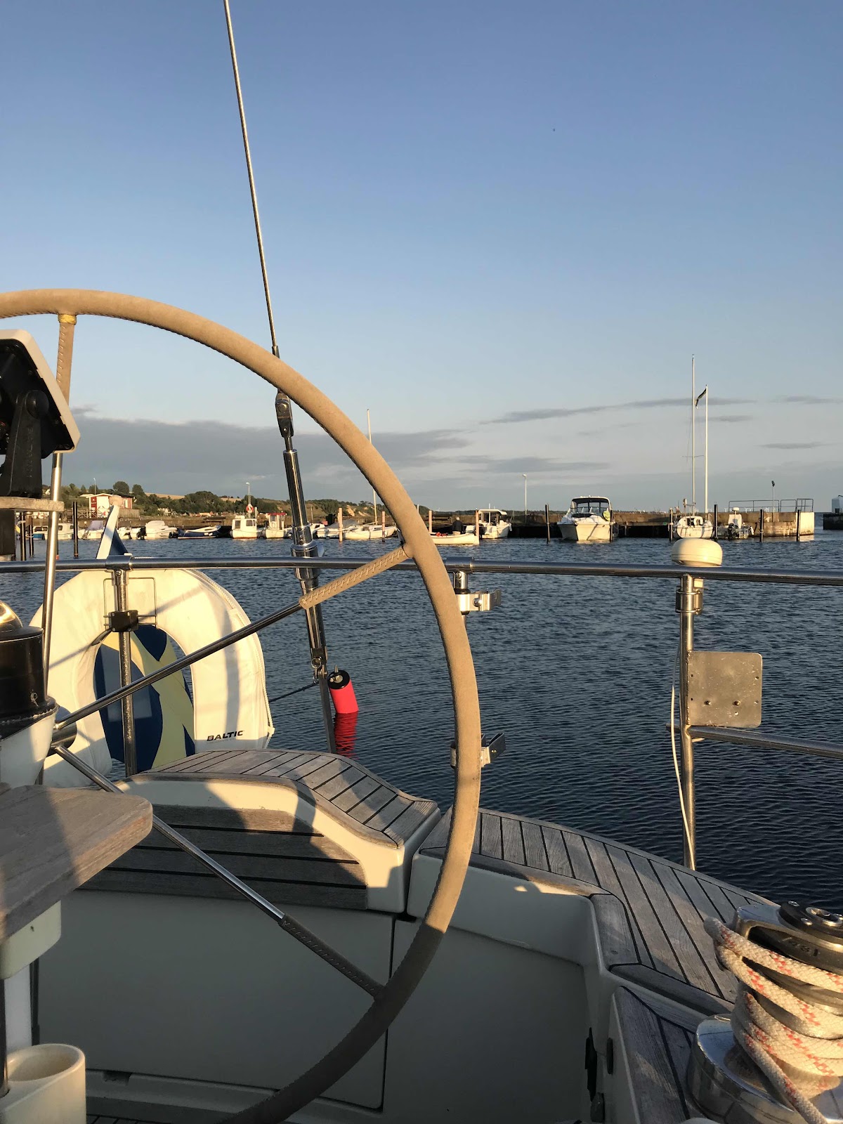 Efter att på vår första semesterdag vaknat långsamt till solen strilande genom den lilla skog vi har och fixat med hemmet, packat våra grejor tog vi oss ned till hamnen vid ett-tiden. Stuvade in allt och käkade lite lunch. Vid tre-tiden kastade vi tamparna och satte kursen åt norr. Tuff motvind men Hallands Väderöar hägrar. Fick lite lä bakom Ven men både 10 m/s i nosen och en knop motström underlättade vårt beslut om att ta en natt i Ålabodarna