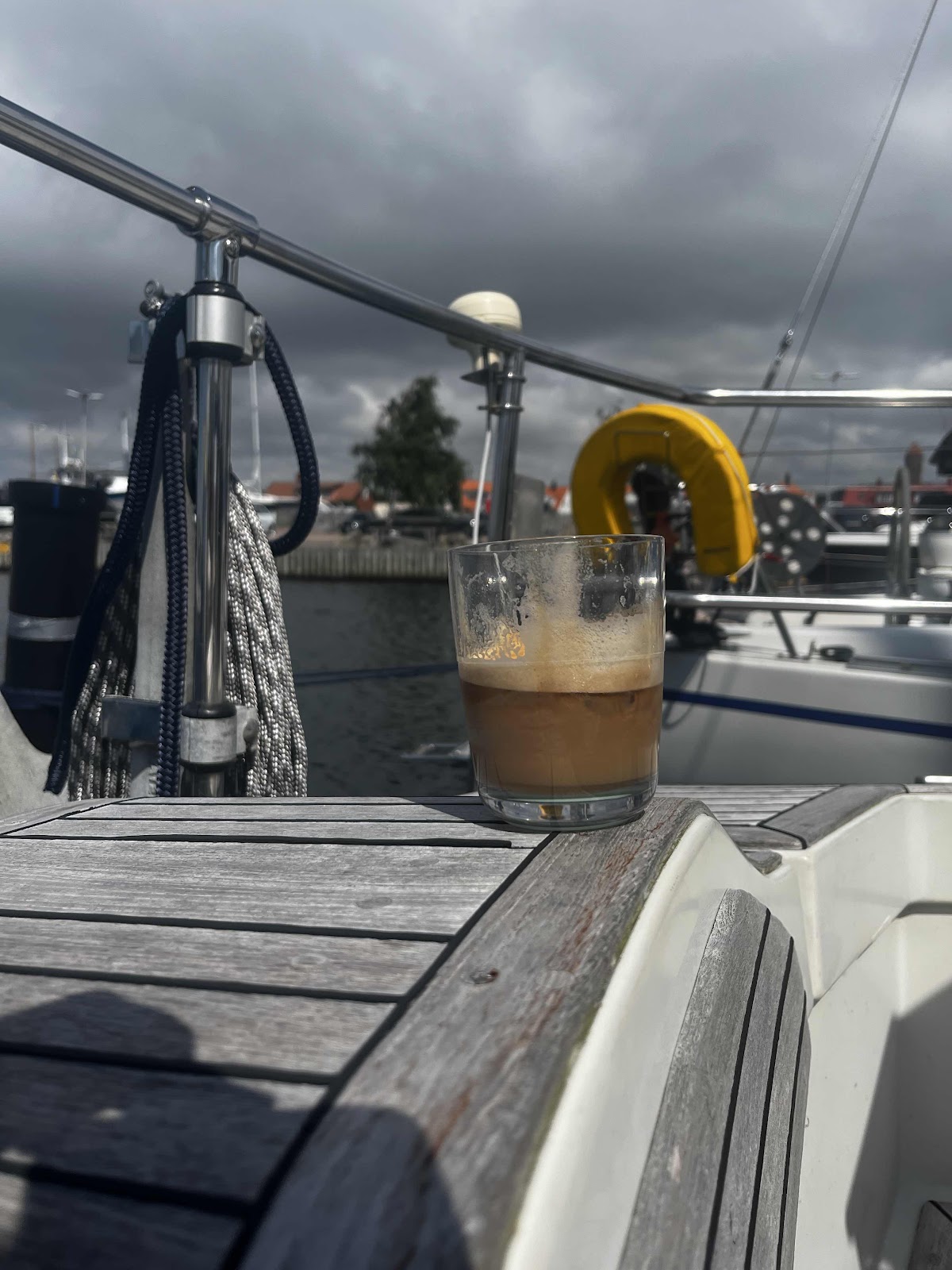 Klockan blev närmare tio innan vi kom iväg. Blev en fin slörsegling söderut och har nu förtöjt i Råå. Till en go islatte funderas det på lunch. Äta ute eller i båten är frågan.
